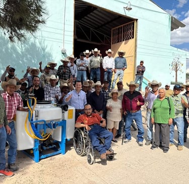 Este sábado se vivió una intensa jornada de trabajo en la region. Julio Hurtado y Julio Escalante se reunieron con agricultores del municipio de Ojuelos en la comunidad de La Paz, donde se hizo la entrega de una aspersora.